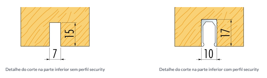 Para a instalação é necessário fazer um corte na parte inferior da folha da mesma largura do perfil.