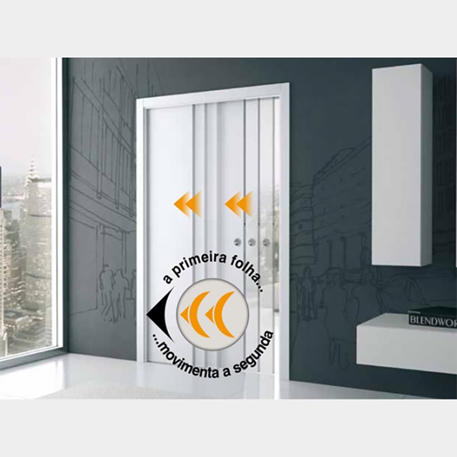 Com o acessório Sincronia para Telescópica, obtemos o movimento sincronizado das duas folhas com grande facilidade de abrir/fechar as mesmas.Evita o típico e desconfortável funcionamento “empurra-bate” característico das portas telescópicas.