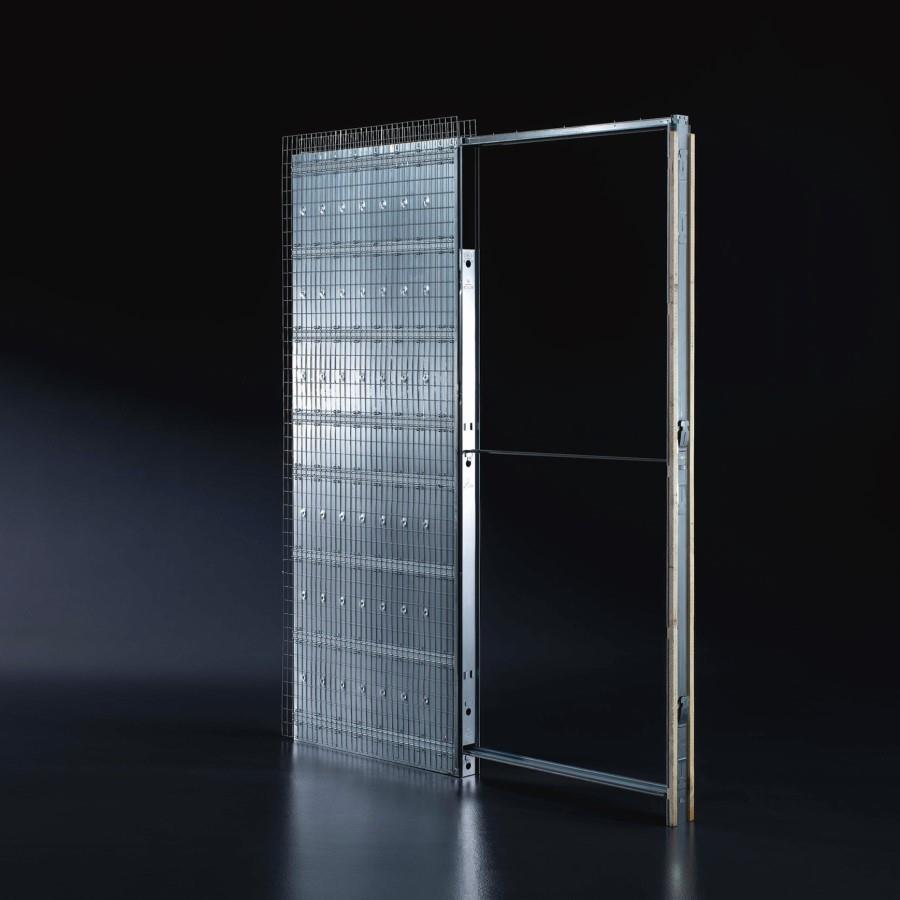- Barra de alinhamento: É um perfil projetado de tal forma que facilita a instalação da porta de embutir e evita erros por parte do pedreiro. Como resultado obtemos um alinhamento perfeito do montante batente com a parte do sistema onde a folha entra.