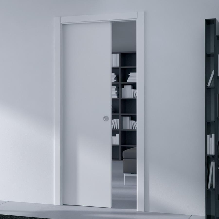 A porta embutida único para alvenaria, ou seja, sistema de embutir para uma folha. É uma estrutura metálica de aço zincado que entra na parede no lugar do tijolo, consequentemente não aumenta a espessura da parede. Fabricada de forma que recebe diretamente chapisco e reboco e se engloba à parede sem alterar a espessura original.Simples, funcional, forte e confiável é o modelo básico que engloba qualidade e funcionalidade. É amplamente utilizado em reformas, assim como em novas construções residenciais e comerciais. Oferece ilimitadas possibilidades para otimizar o uso de espaço disponível, não só agregando valor, mas também melhorando o conforto habitacional.