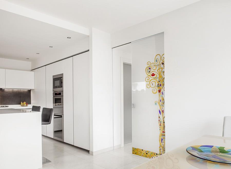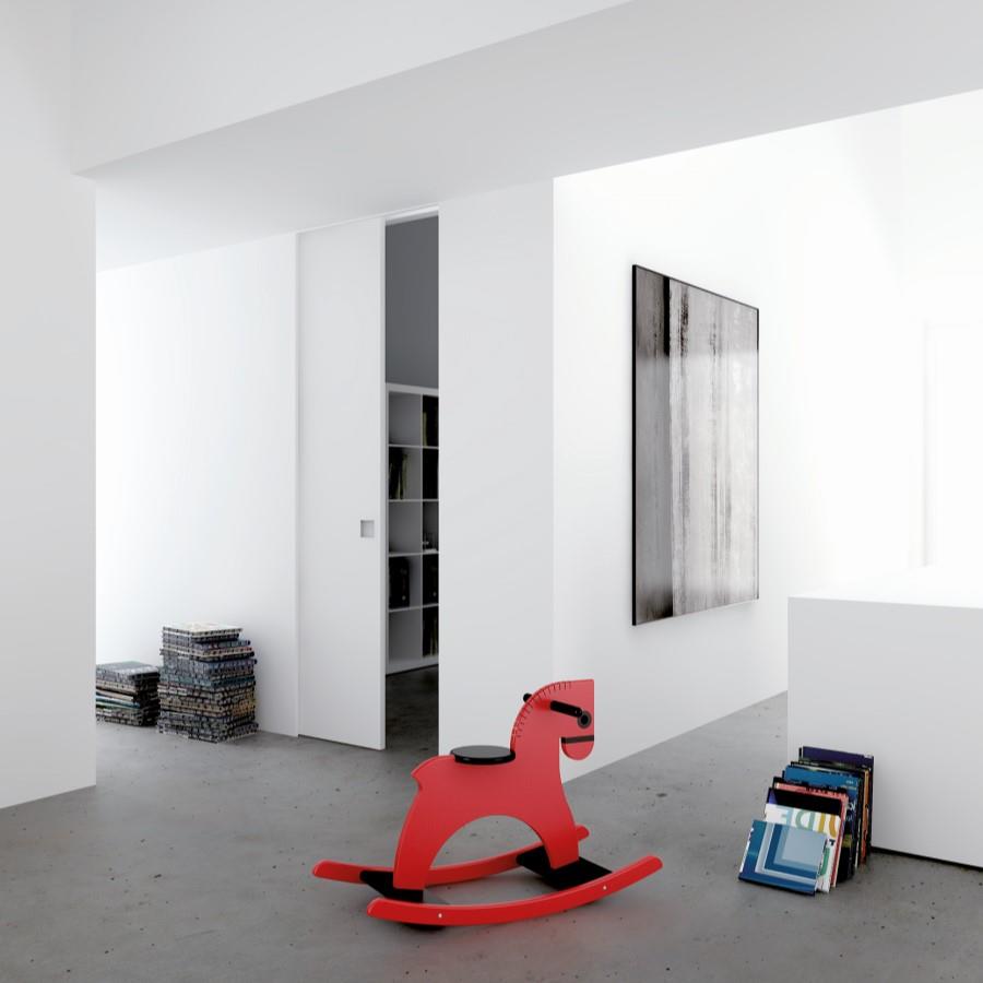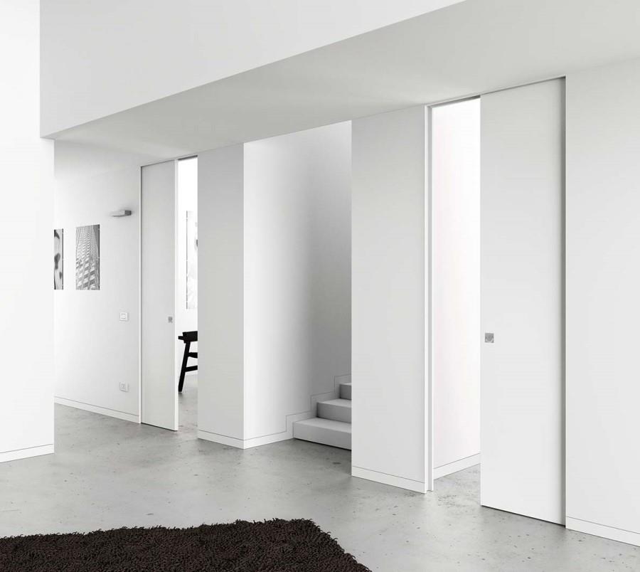 Syntesis®Line é acabado diretamente com o drywall. Uma solução de caráter moderno, perfeito para ambientes minimalistas e para quem quer decorar com pouca "informação". A ausência de acabamento de madeira favorece a perfeita integração da superfície deslizante, ligando técnica e design no sinal de tempo presente.