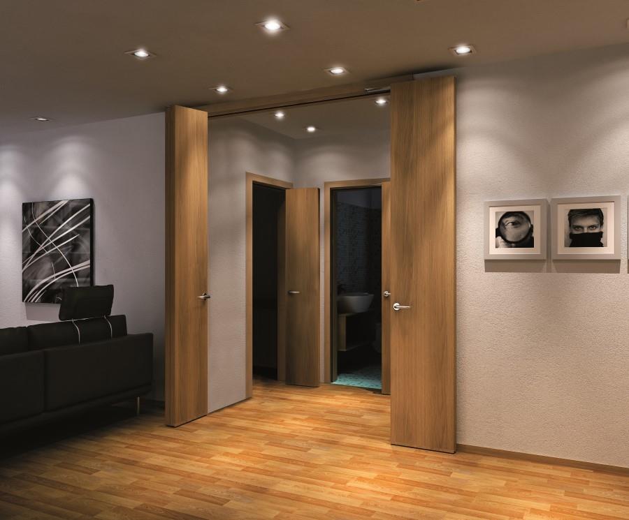 A ferragem do sistema 90° e 180° é inegavelmente uma evolução do sistema de movimento tipico da porta camarão. Tanto a de 90° quanto a de 180° utilizam folhas e marcos iguais. Consequentemente a usinagem das folhas para realizar aberturas de 90 ou 180° é a mesma, facilitando a produção em grande escala.